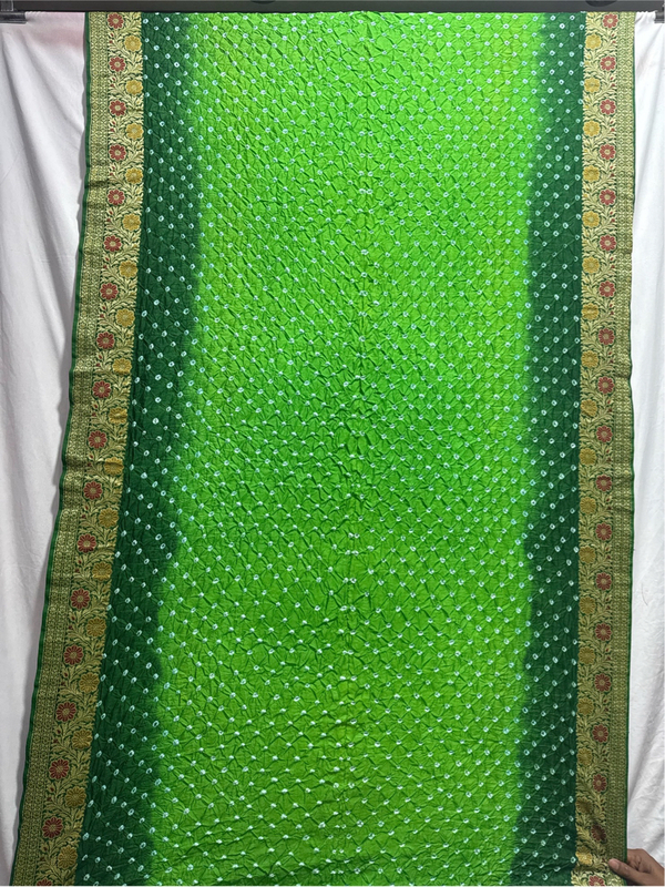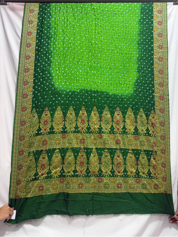 Kala Sanskruti Light Dark Green Color Dupion Silk Bandhani Saree 6.5M with Blouse Piece Elegant Traditional Wear Bridal Saree for Women