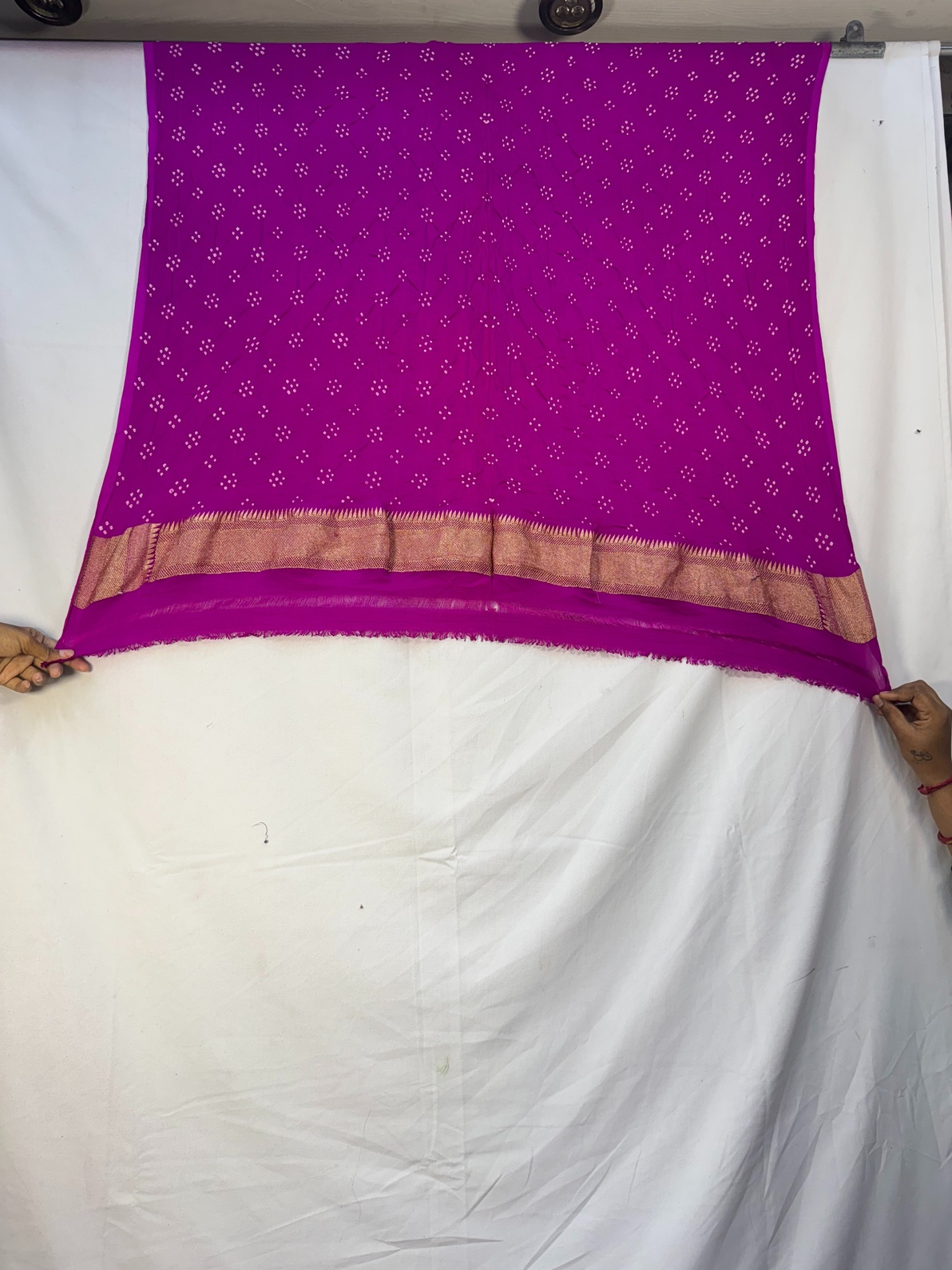 - Material: Made from premium Banarasi Georgette fabric with traditional Bandhani work.
