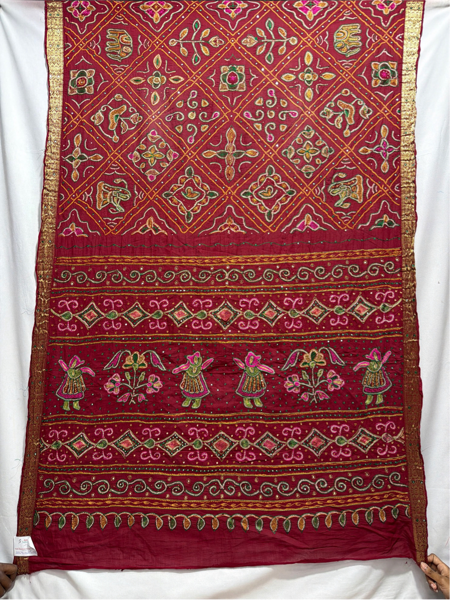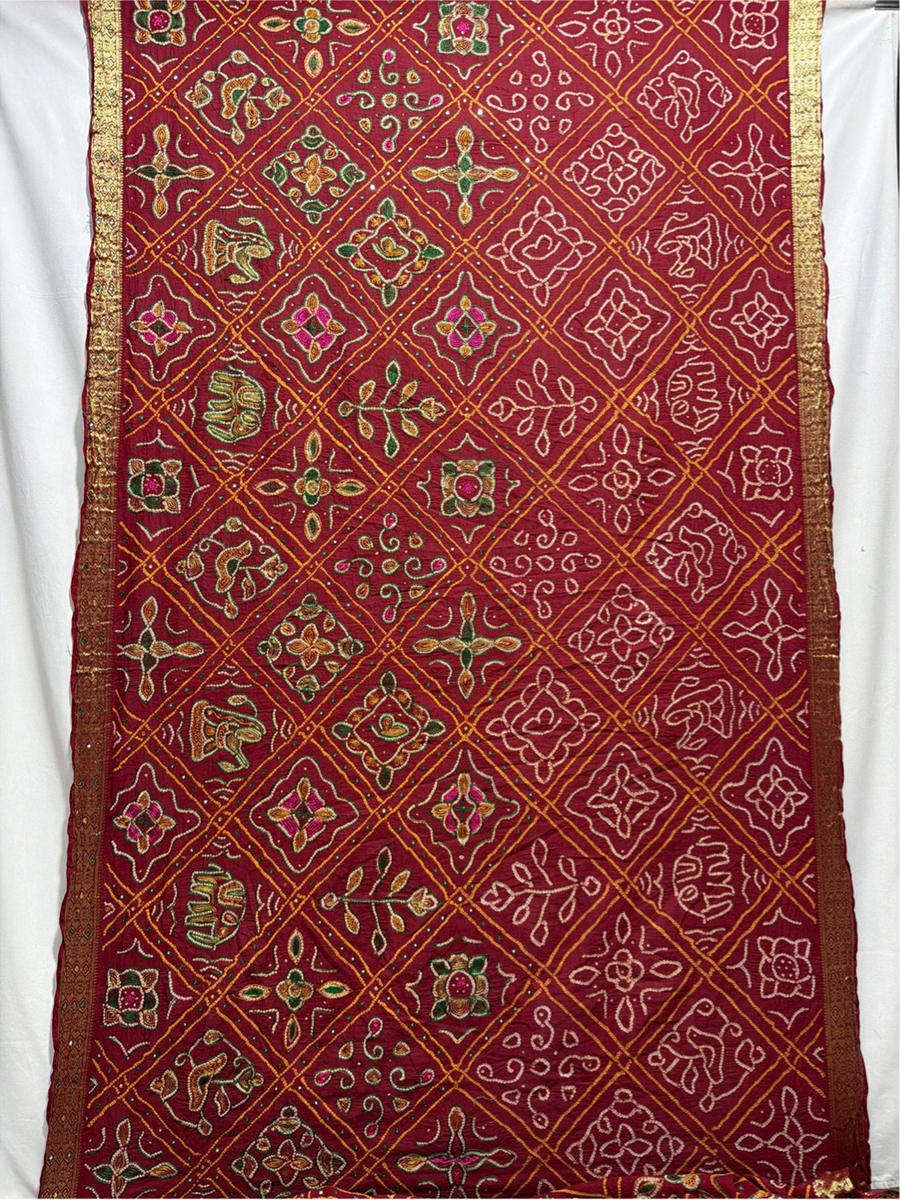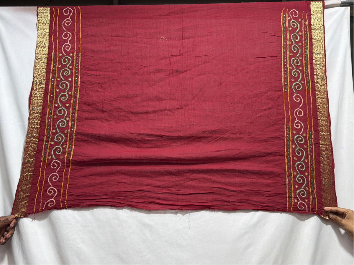 Kala Sanskruti All Over Maroon Color Cotton Bandhani Saree With Hand Work 6.5M Elegant Traditional Wear Graceful Handcrafted Artistry For Woman