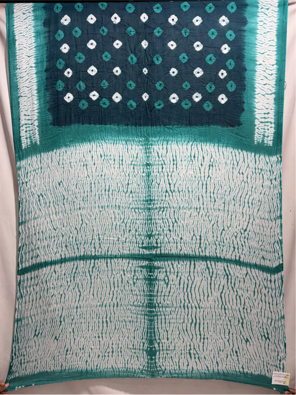Kala Sanskruti Indigo & Rama Green Color Cotton Bandhani Saree With Sibori 6.5M with Blouse Piece Elegant Traditional Wear Saree for Women