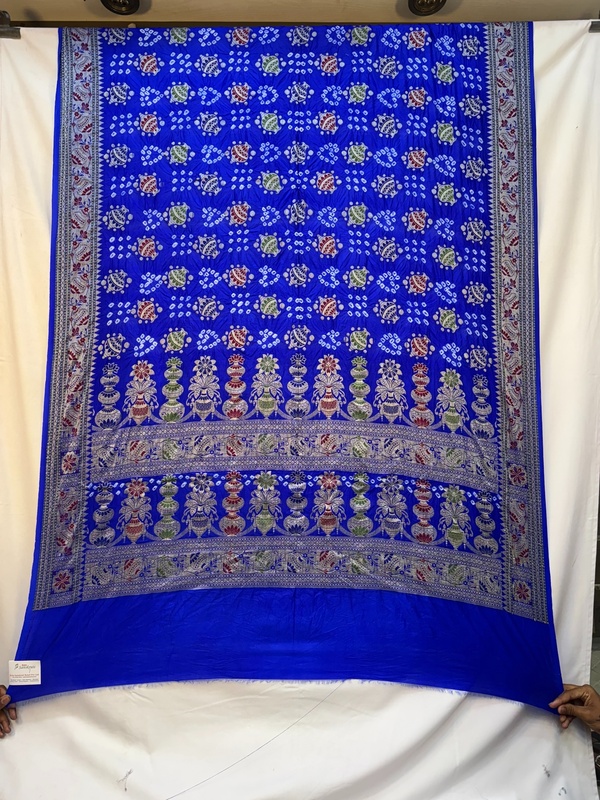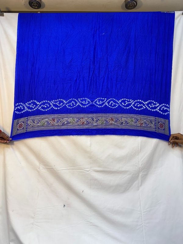 Kala Sanskruti All Ove Royal Blue Color Dupion Silk Bandhani Saree 6.5M with Blouse Piece Elegant Traditional Wear Bridal Saree for Women