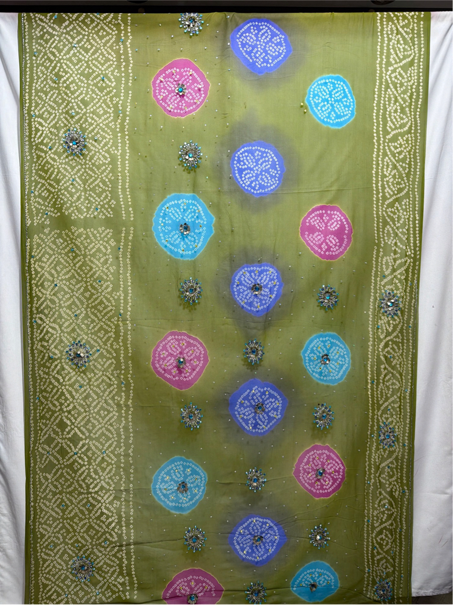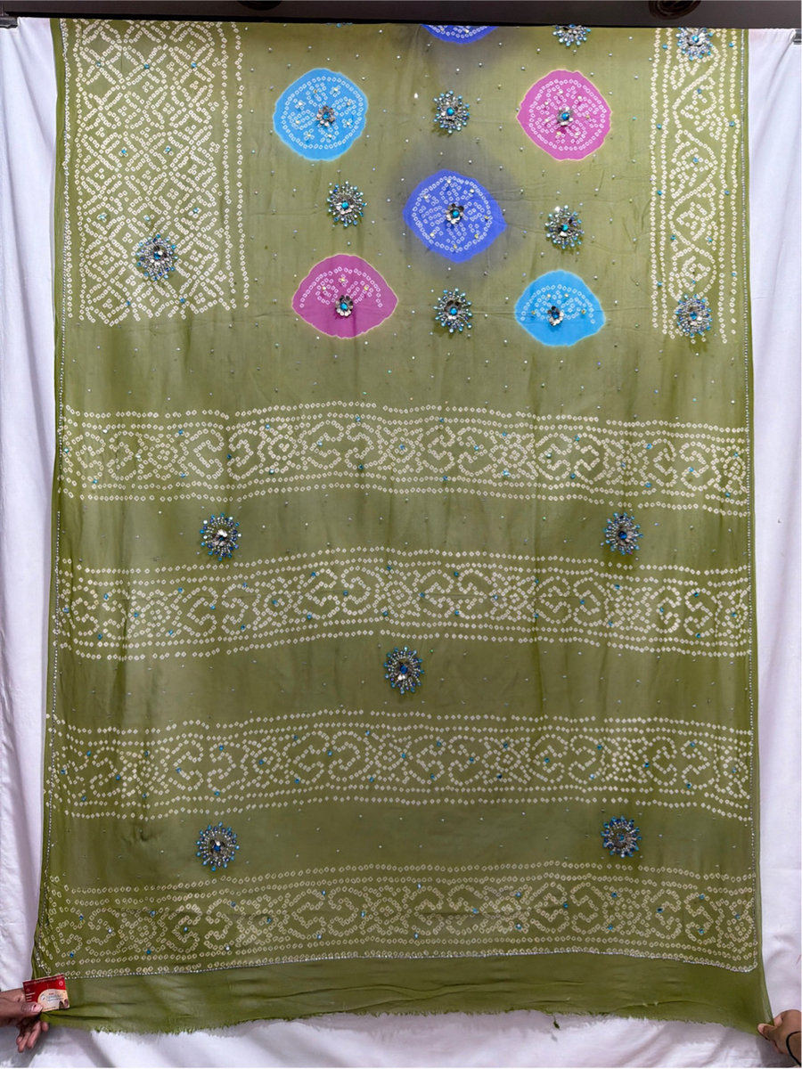 Kala Sanskruti All Over Mehndi Color Pure Creap Bandhani Saree 6.5M with Blouse Piece Elegant Traditional Wear Bridal Unique Saree for Women