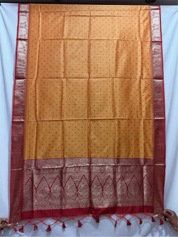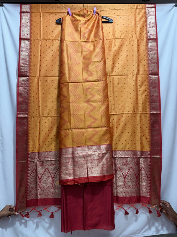 Kala Sanskruti Orange & Red Color Art Silk Patola Dress 2.5 M Each Piece Elegant Traditional Wear Art Silk Dress for Women