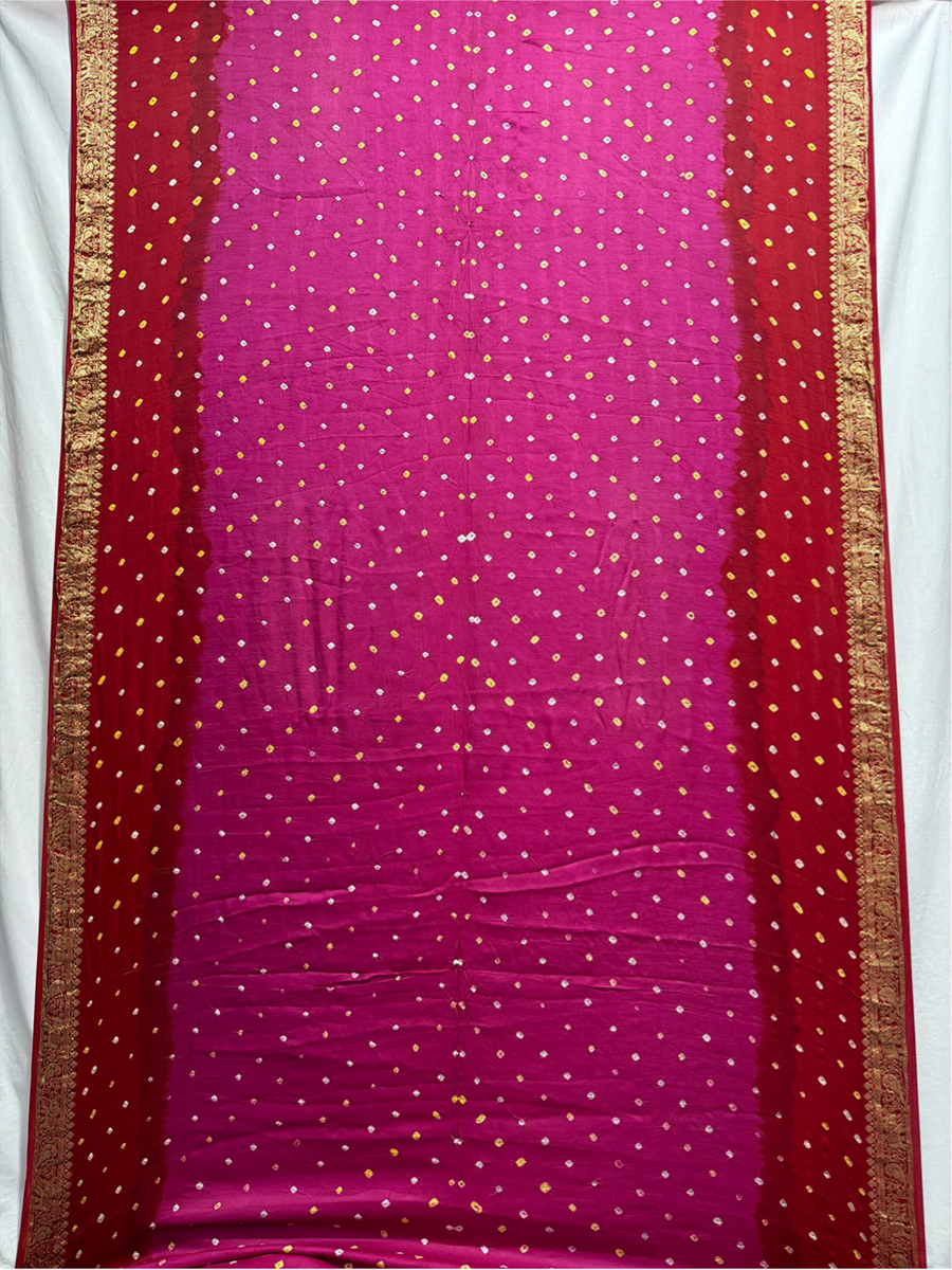 Kala Sanskruti Pink & Red Color Art Silk Bandhani Saree 6.5M with Blouse Piece Elegant Traditional Wear Bridal Unique Saree for Women