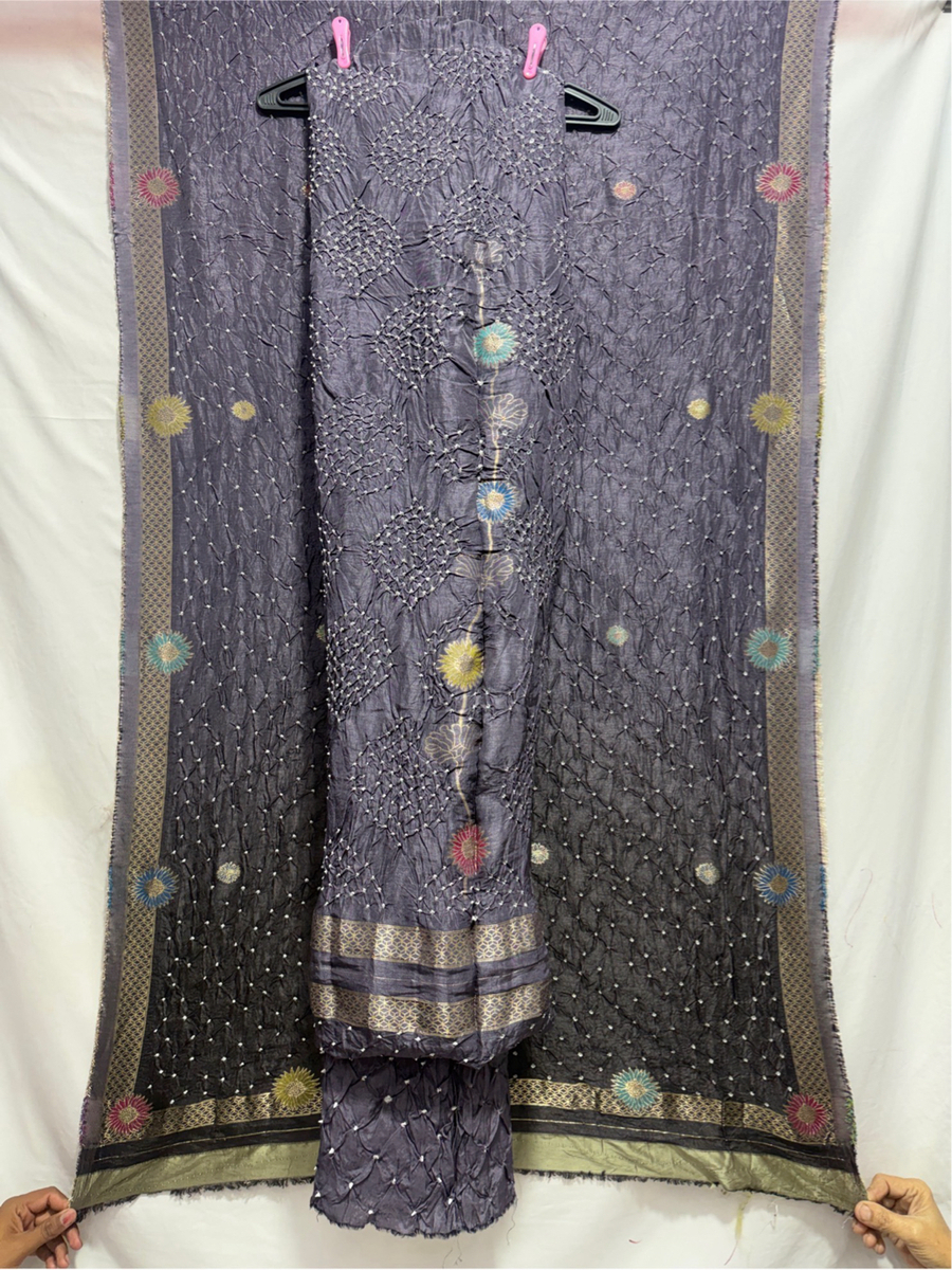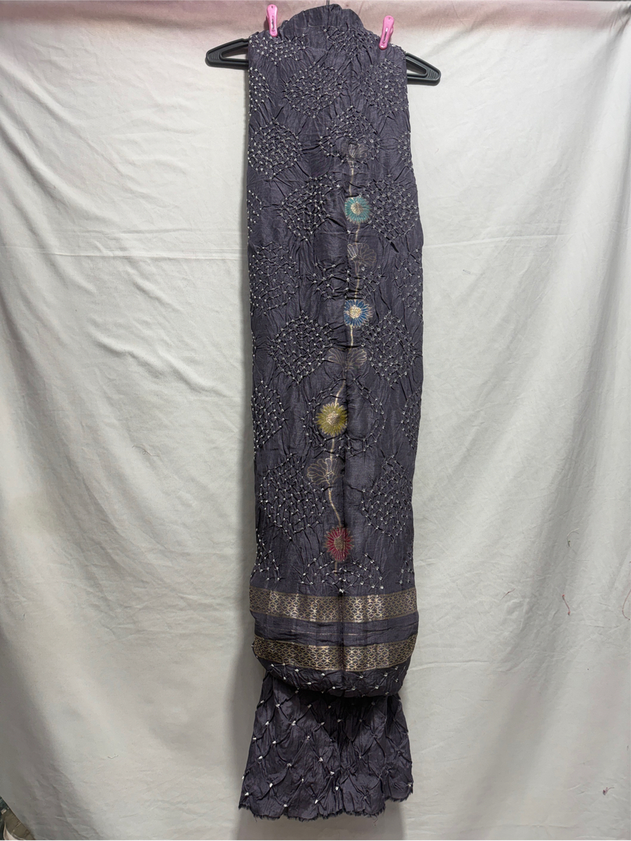 Kala Sanskruti Ston Bleck Color Art Silk Bandhani Dress 2.5 M Each Piece Elegant Traditional Wear Art Silk Dress for Women