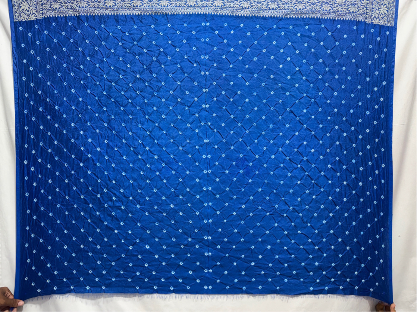 - Design & Shade: Blue & Morpichh base enhanced with Hand Made Bandhani, a true example of cultural craftsmanship.