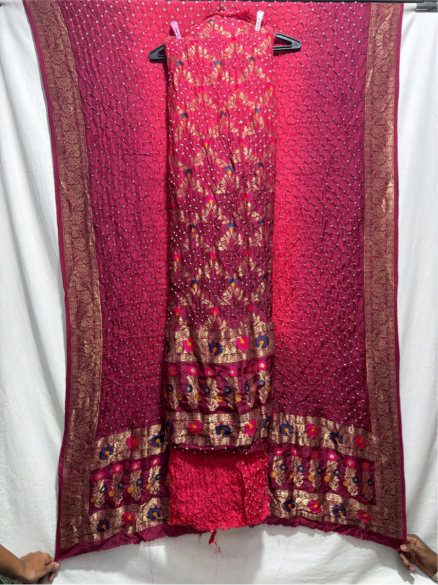Kala Sanskruti Gajri & Peacha Color Art Silk Bandhani Dress 2.5 M Each Piece Elegant Traditional Wear Art Silk Dress for Women