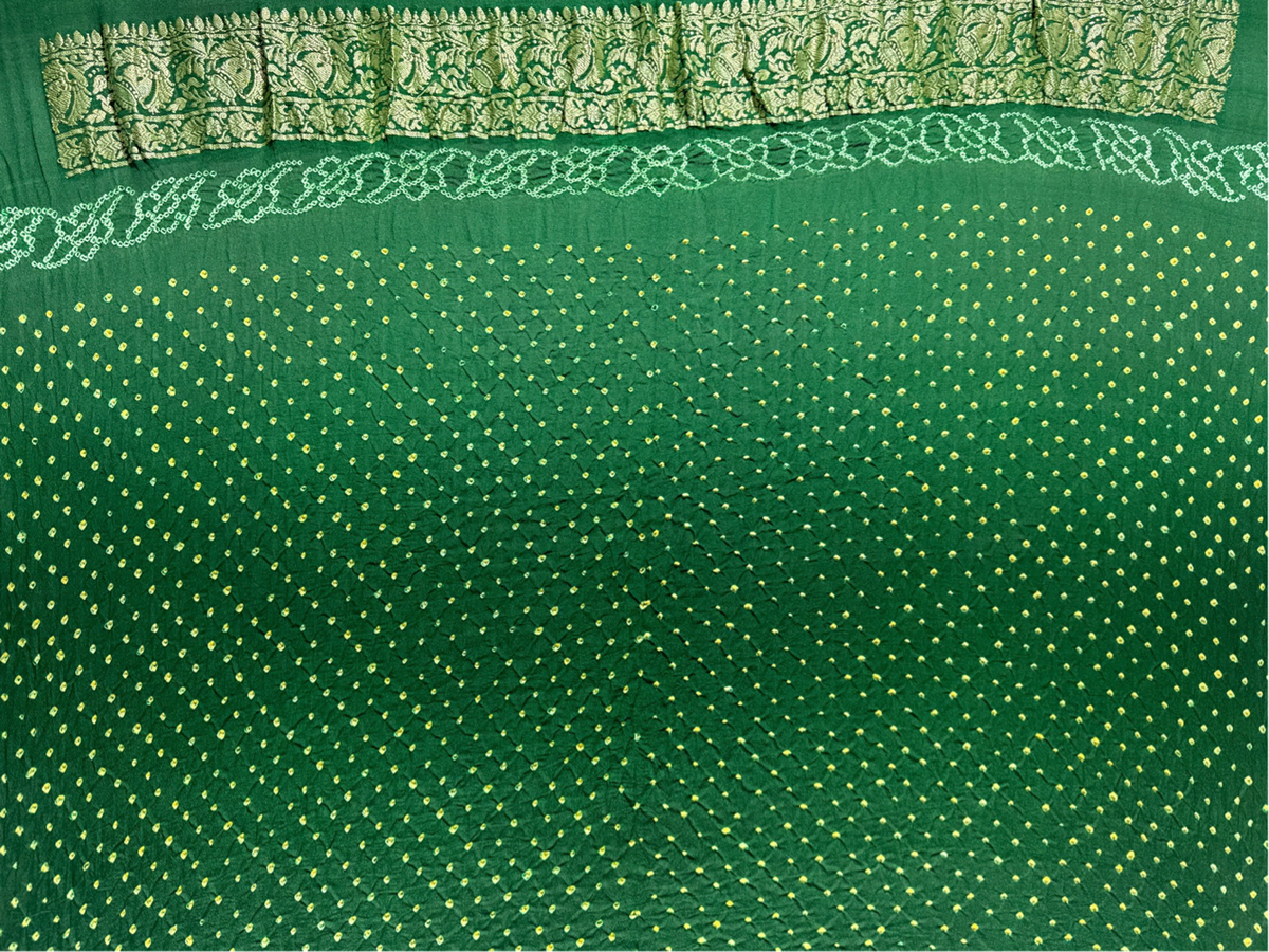 • Color & Work: A graceful All Over Green saree with delicate Bandhani patterns, reflecting timeless artistry and vibrant charm.