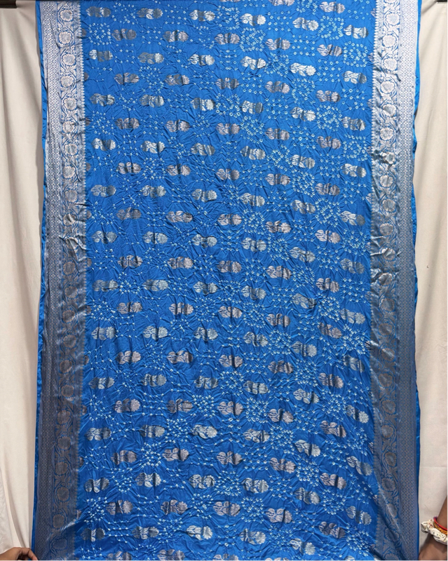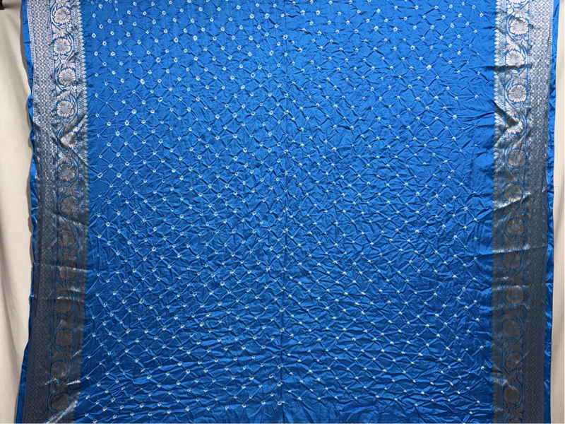 Kala Sanskruti All Over Sky Blue Color Dupion Silk Bandhani Saree 6.5M with Blouse Piece Elegant Traditional Wear Bridal Saree for Women