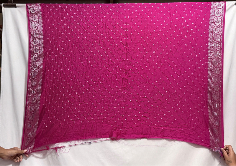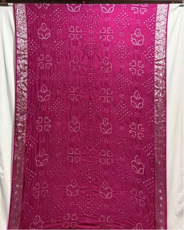 Kala Sanskruti All Over Rani Pink Color Dupion Silk Bandhani Saree 6.5M with Blouse Piece Elegant Traditional Wear Bridal Saree for Women