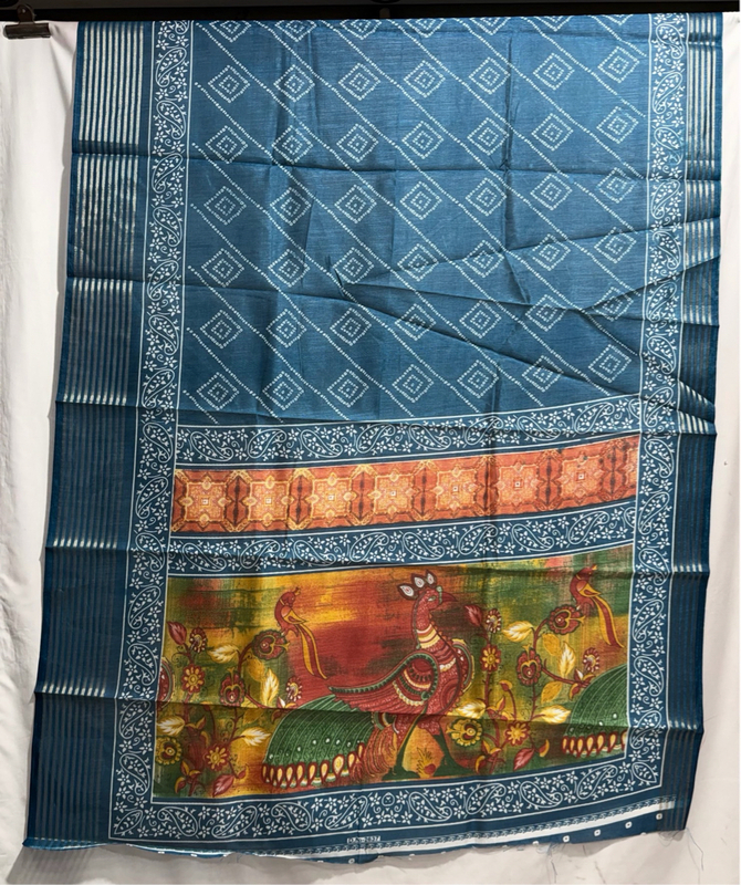 Kala Sanskruti All Over Blue Color Art Silk Printed Saree 6.5M with Blouse Piece Elegant Traditional Wear Bridal Unique Saree for Women