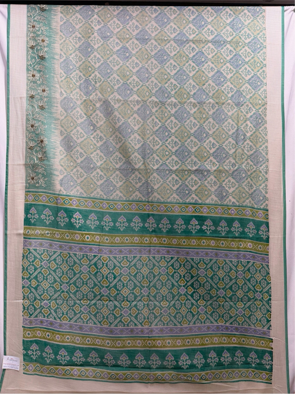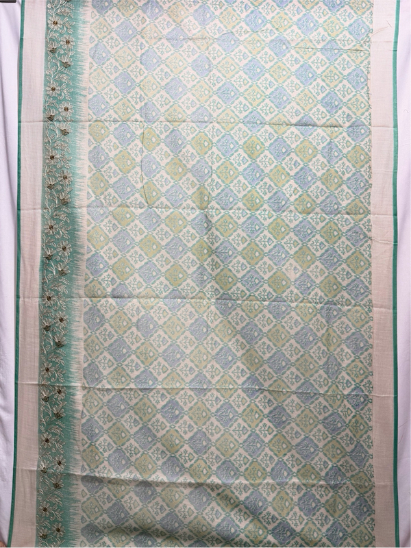 Kala Sanskruti Pista & Cream Color Cotton Printed Saree 6.5M with Blouse Piece Elegant Traditional Wear Saree for Women
