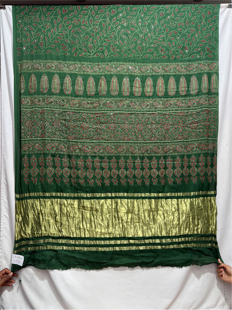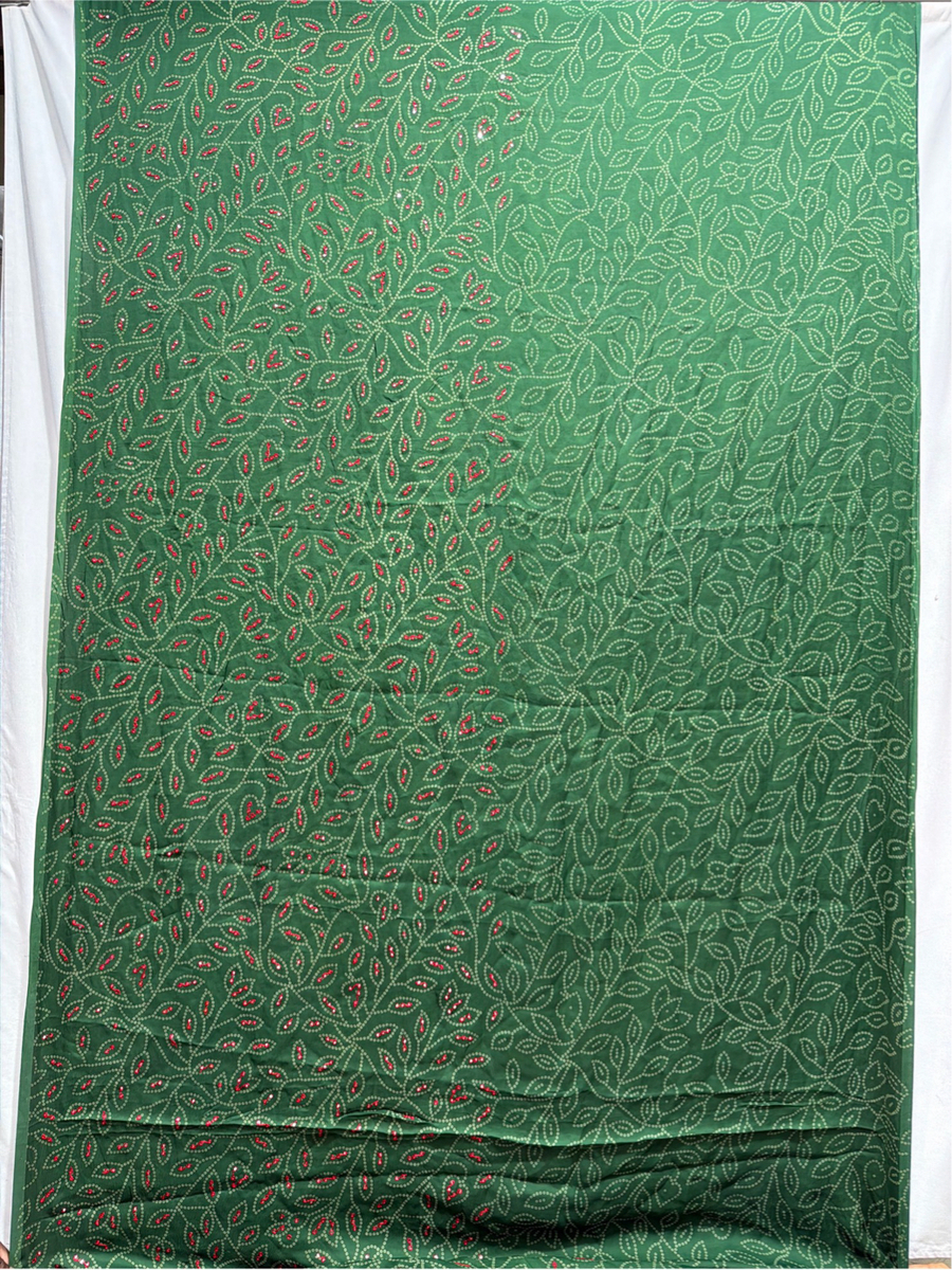 Kala Sanskruti All Over Green Color Semi Gaji Bandhani Saree With Hand Work 6.5M Elegant Traditional Wear Graceful Handcrafted Artistry For Woman
