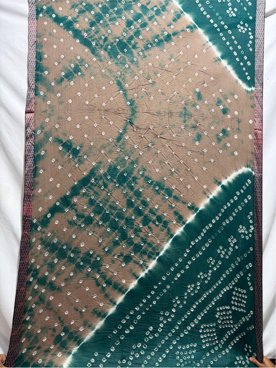 Kala Sanskruti Chiku & Rama Green Color Cotton Bandhani Saree 6.5M with Blouse Piece Elegant Traditional Wear Saree for Women