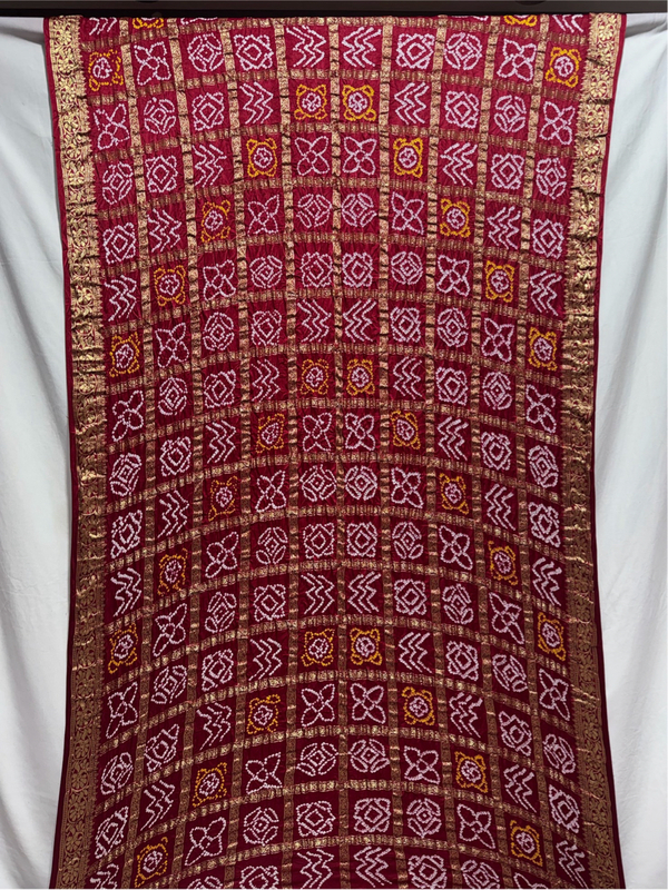Kala Sanskruti All Over Maroon Color Pure Gaji Silk Heavy Gharchola Bandhani Saree 6.5M with Blouse Piece Elegant Traditional Wear Gharchola Saree for Women