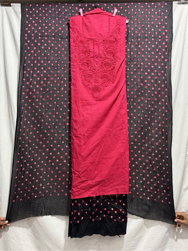 Kala Sanskruti Pink & Black Color Heavy Cotton Satin Bandhani Dress 2.5 M (Each Piece) Elegant Traditional Wear Dress Material for Women