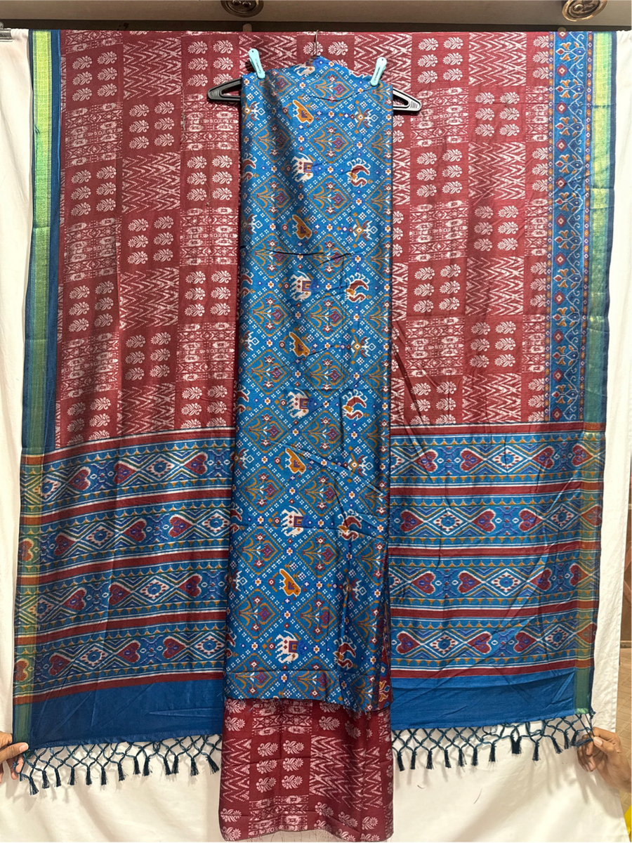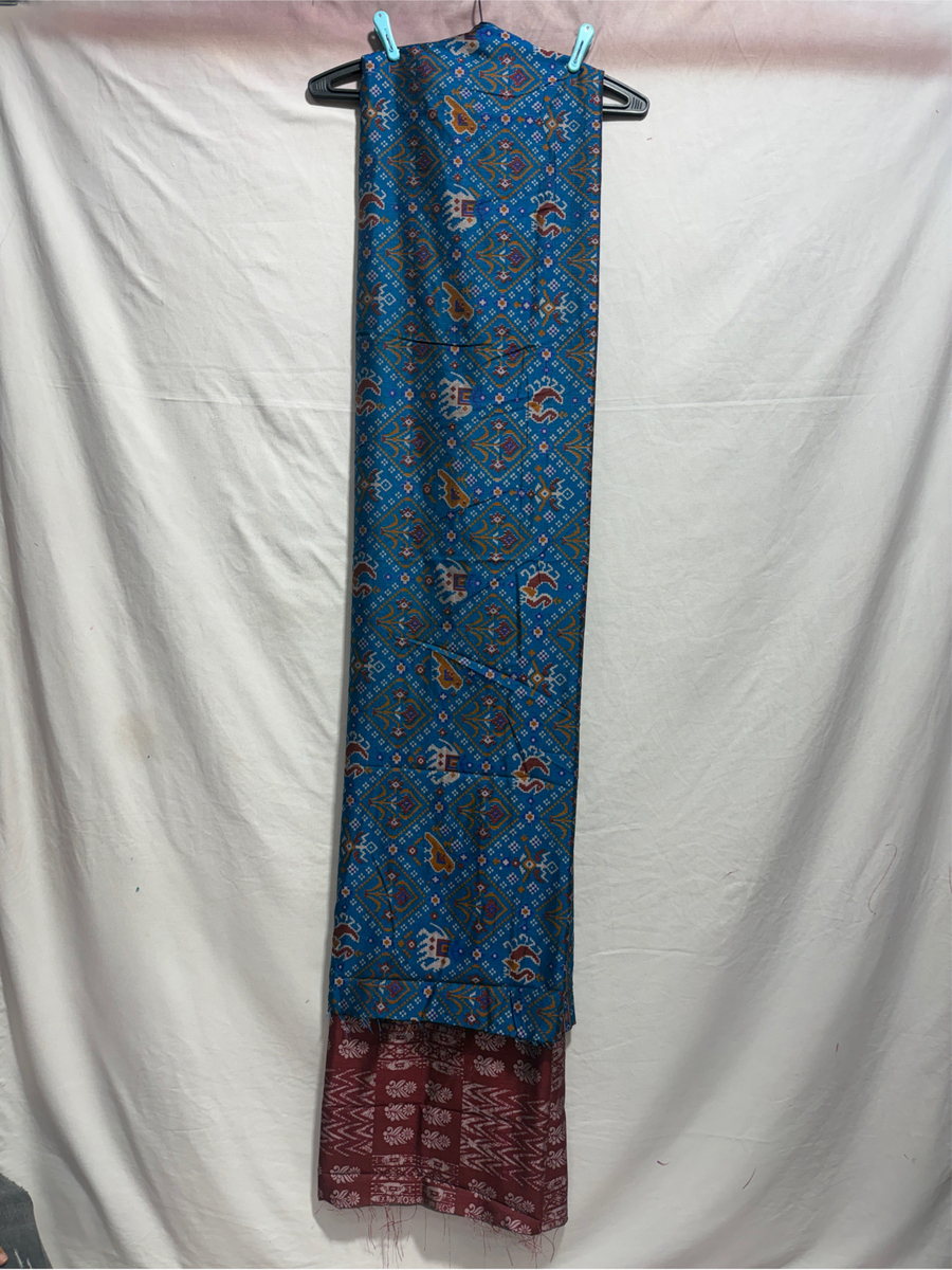 Kala Sanskruti Indigo Maroon Color Art Silk Patola Dress 2.5 M Each Piece Elegant Traditional Wear Art Silk Dress for Women