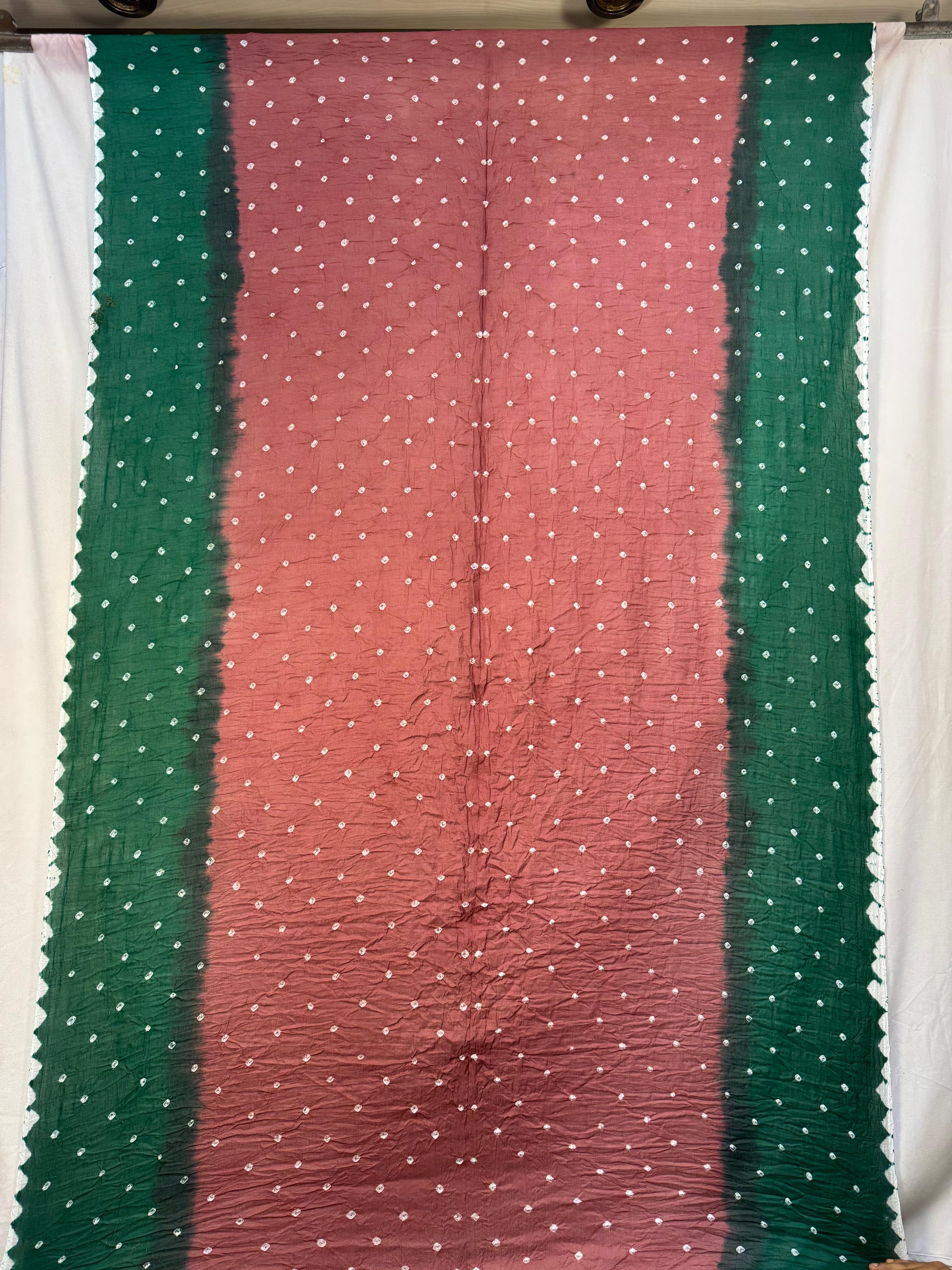 Kala Sanskruti Gajri & Green Color Cotton Bandhani Saree – 6.5M with Blouse Piece – Elegant Traditional Wear Saree for Women