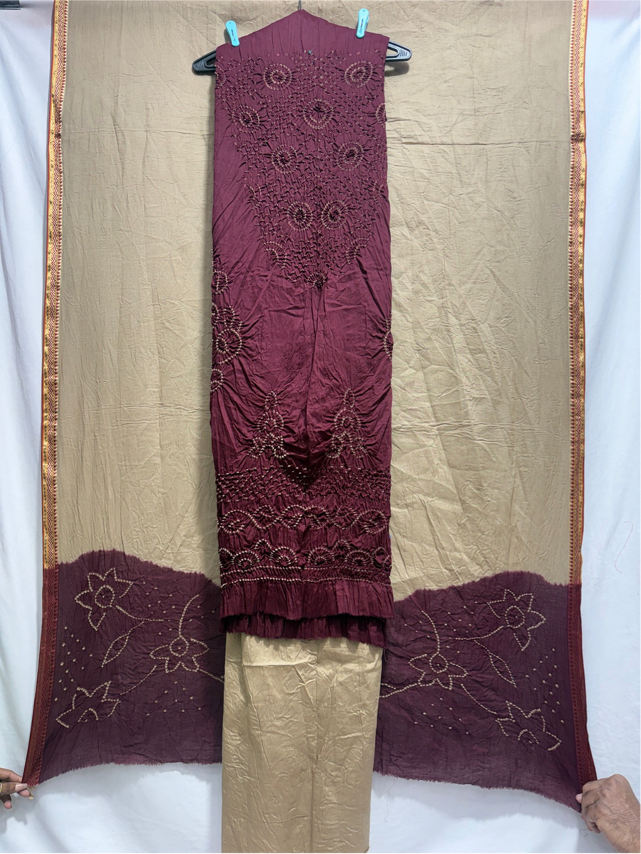 Hand Made Bandhani Saree Fabric