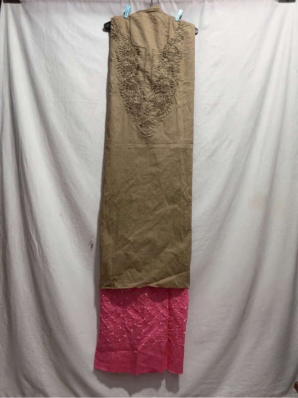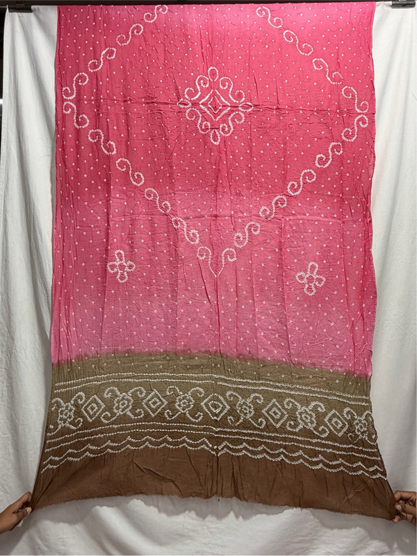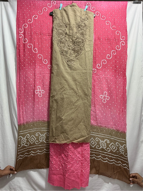 Kala Sanskruti Chiku & Pink Color Heavy Cotton Satin Bandhani Dress 2.5 M (Each Piece) Elegant Traditional Wear Dress Material for Women