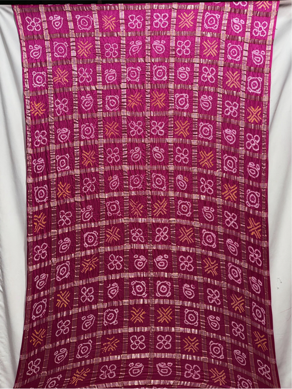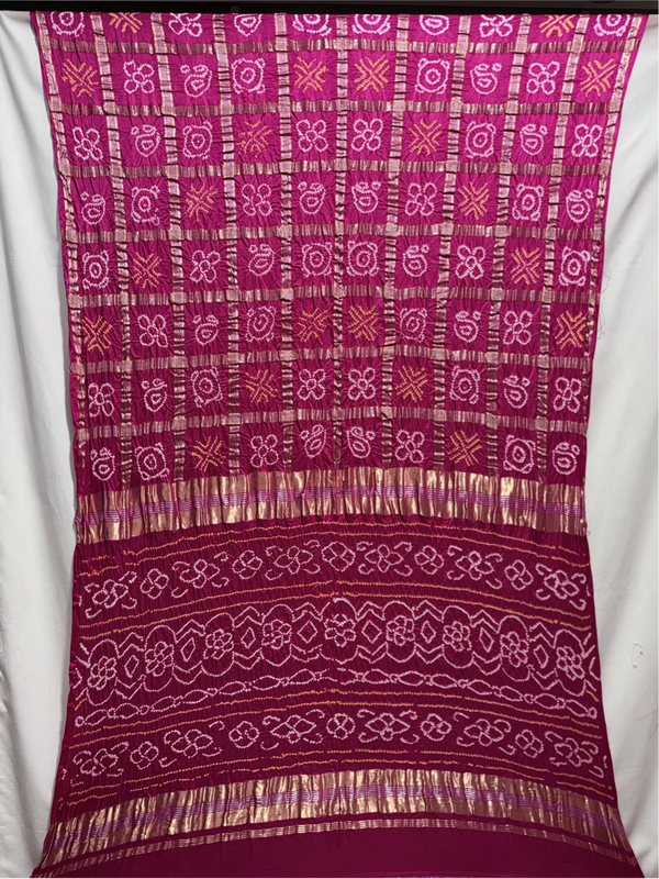 Kala Sanskruti All Over Rani Pink Color Pure Gaji Silk Heavy Gharchola Bandhani Saree 6.5M with Blouse Piece Elegant Traditional Wear Gharchola Saree for Women
