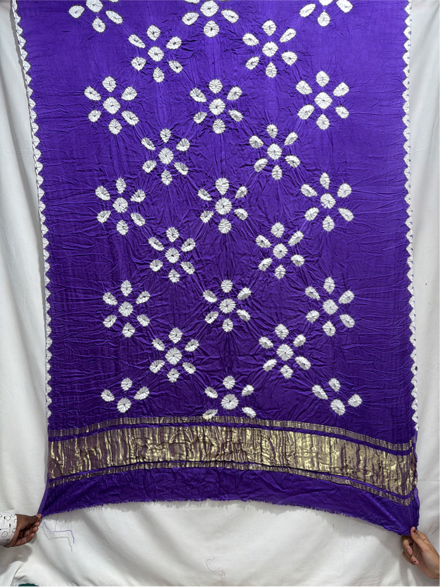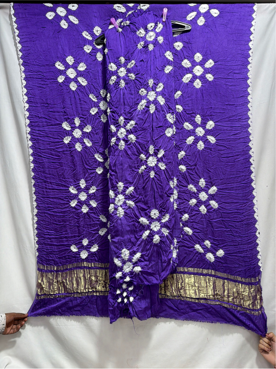 Kala Sanskruti Lavendar & White Color Art Silk Bandhani Dress 2.5 M Each Piece Elegant Traditional Wear Art Silk Dress for Women