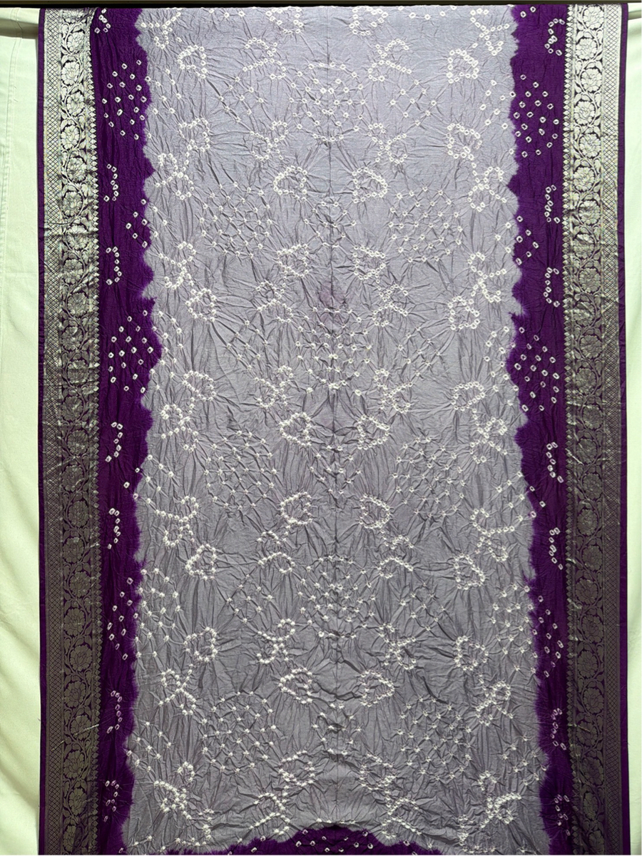 Kala Sanskruti Grey & Magenta Color Dupion Silk Bandhani Saree 6.5M with Blouse Piece Elegant Traditional Wear Bridal Saree for Women