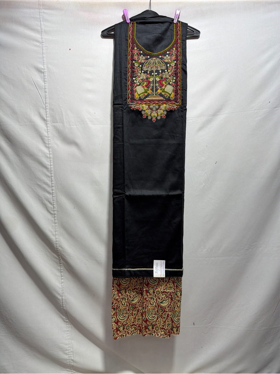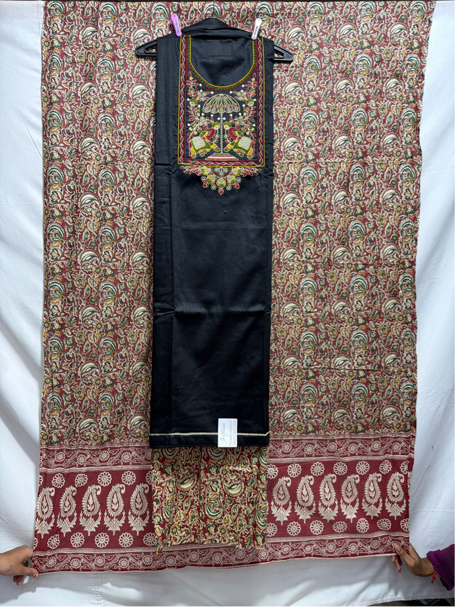 Kala Sanskruti Black & Chiku Color Heavy Cotton Satin Bandhani Dress 2.5 M (Each Piece) Elegant Traditional Wear Dress Material for Women
