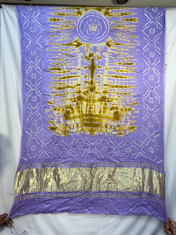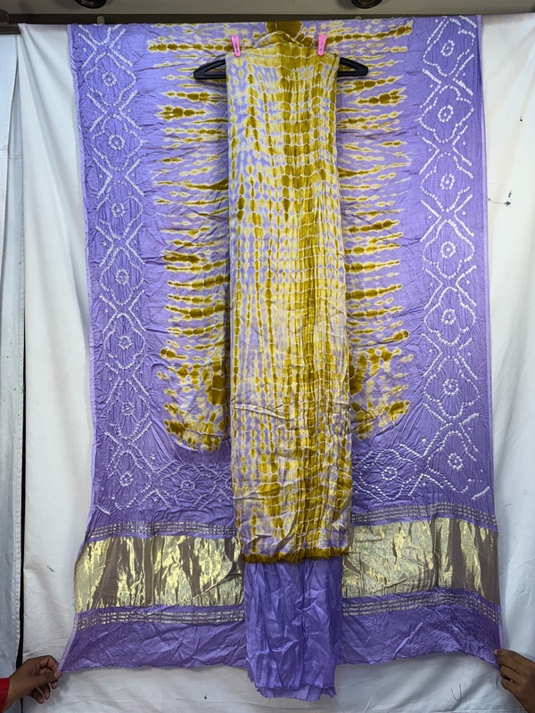 - Design: Yellow & Lavender — Hand Made Bandhani motifs across the body.