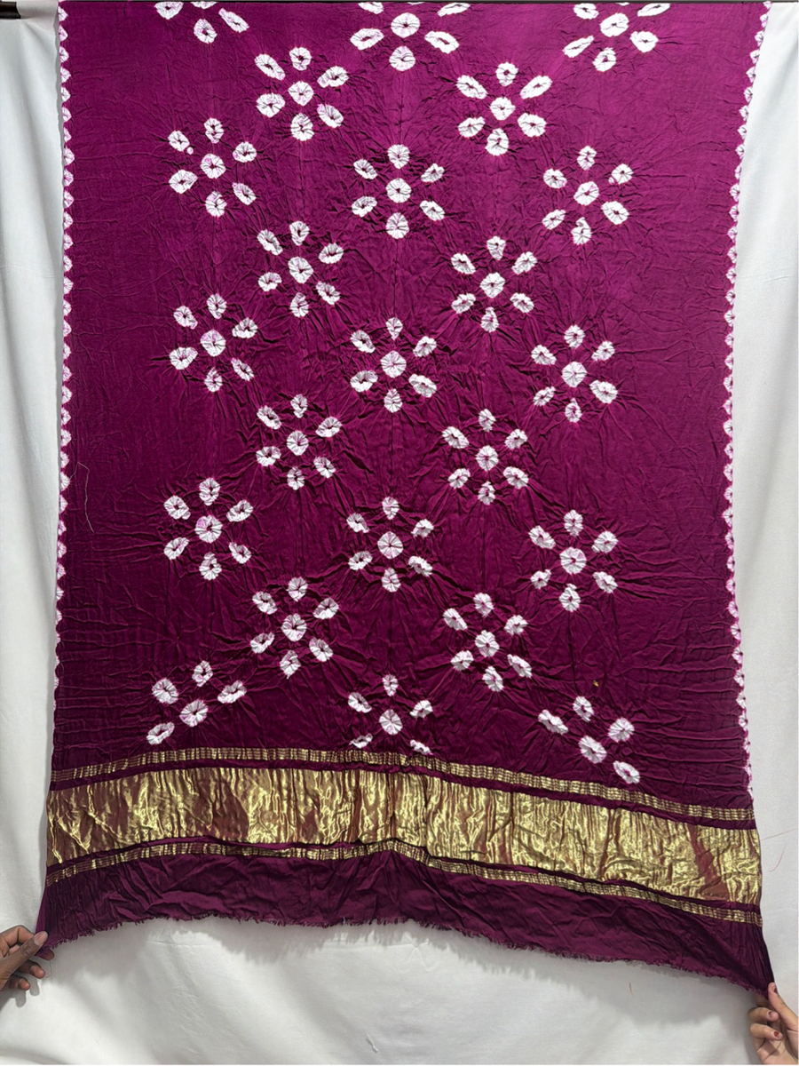Kala Sanskruti Wine & White Color Art Silk Bandhani Dress 2.5 M Each Piece Elegant Traditional Wear Art Silk Dress for Women