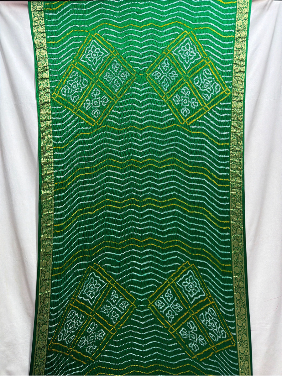 Kala Sanskruti All Over Green Color Pure Gaji Silk Bandhani Saree 6.5M with Blouse Piece Elegant Traditional Wear Saree for Women