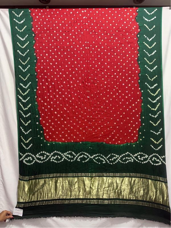 - Design: All Over Gareen Hand Made Bandhani motifs across the body.