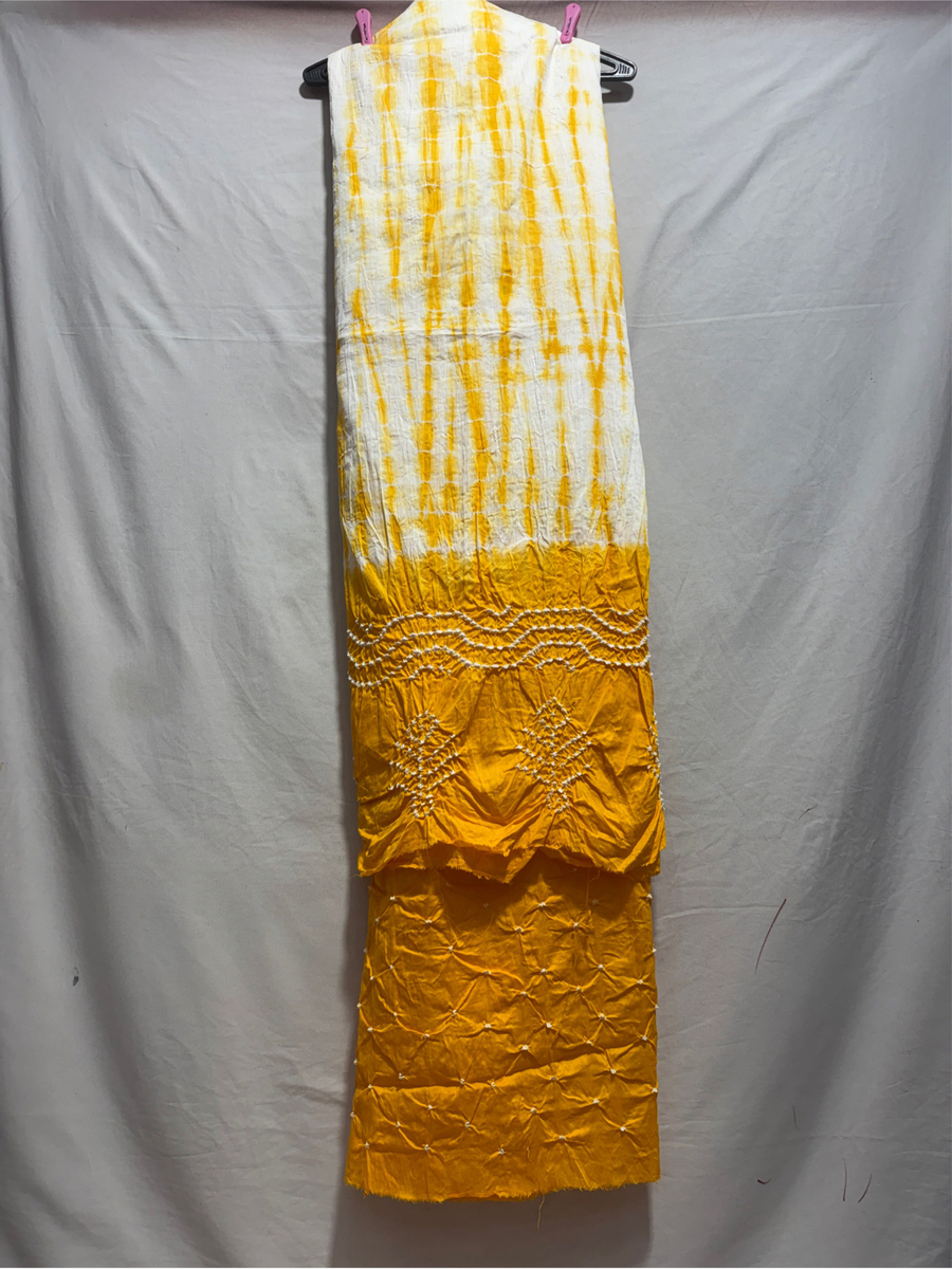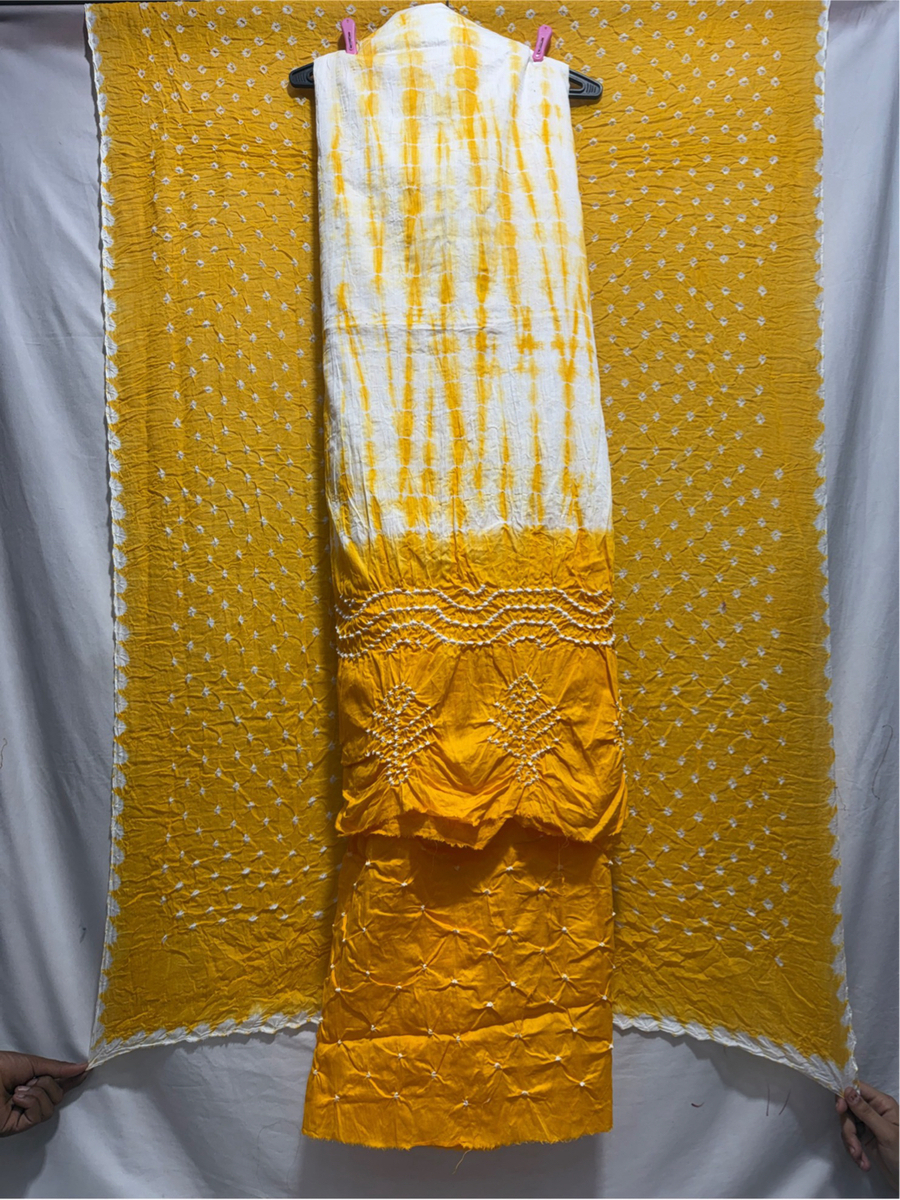Kala Sanskruti White Indigo Colour Heavy Cotton Satin Bandhani Dress 2.5 M (Each Piece) Elegant Traditional Wear Dress Material for Women