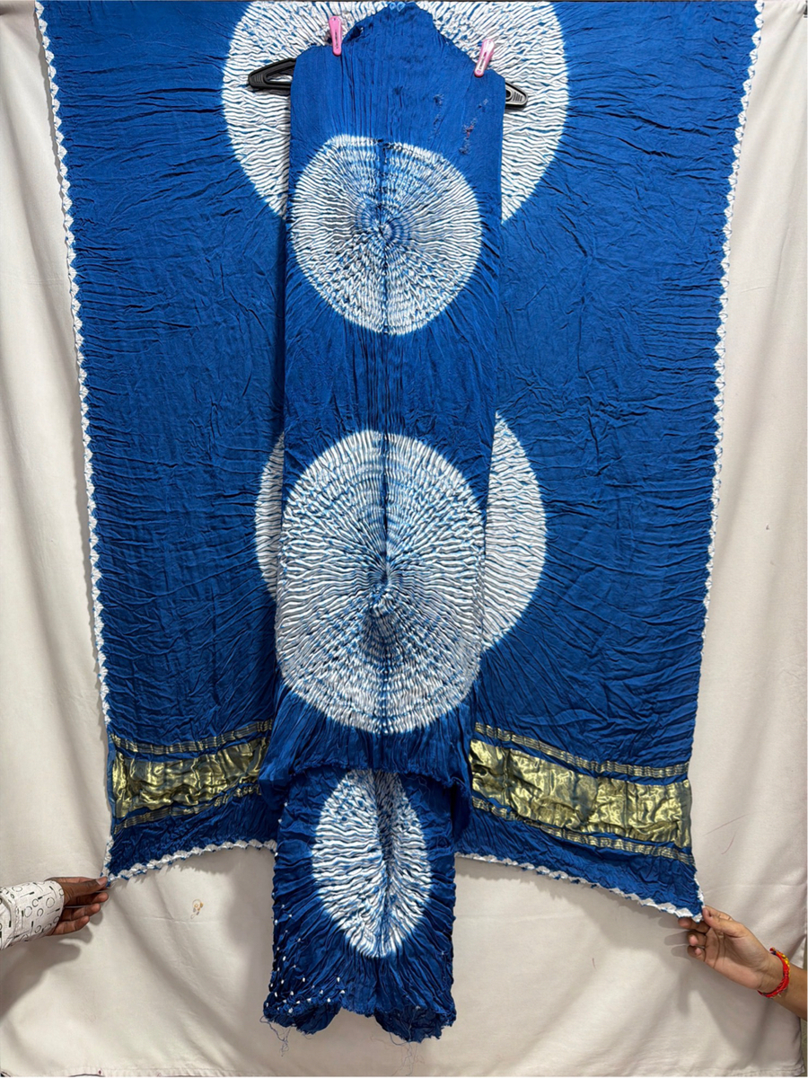 Kala Sanskruti Sky Blue & White Color Art Silk Bandhani Dress 2.5 M Each Piece Elegant Traditional Wear Art Silk Dress for Women