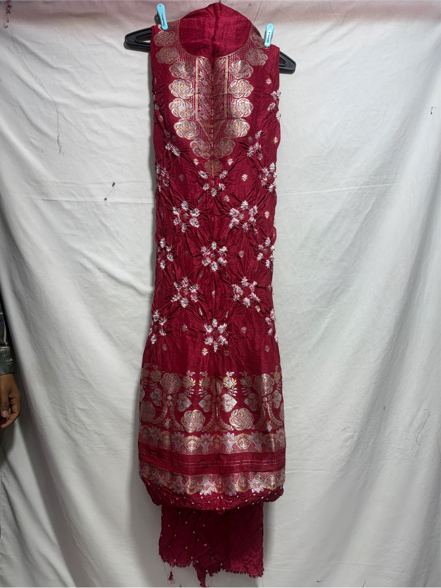 Kala Sanskruti Light Dark Maroon Color Art Silk Bandhani Dress 2.5 M Each Piece Elegant Traditional Wear Art Silk Dress for Women