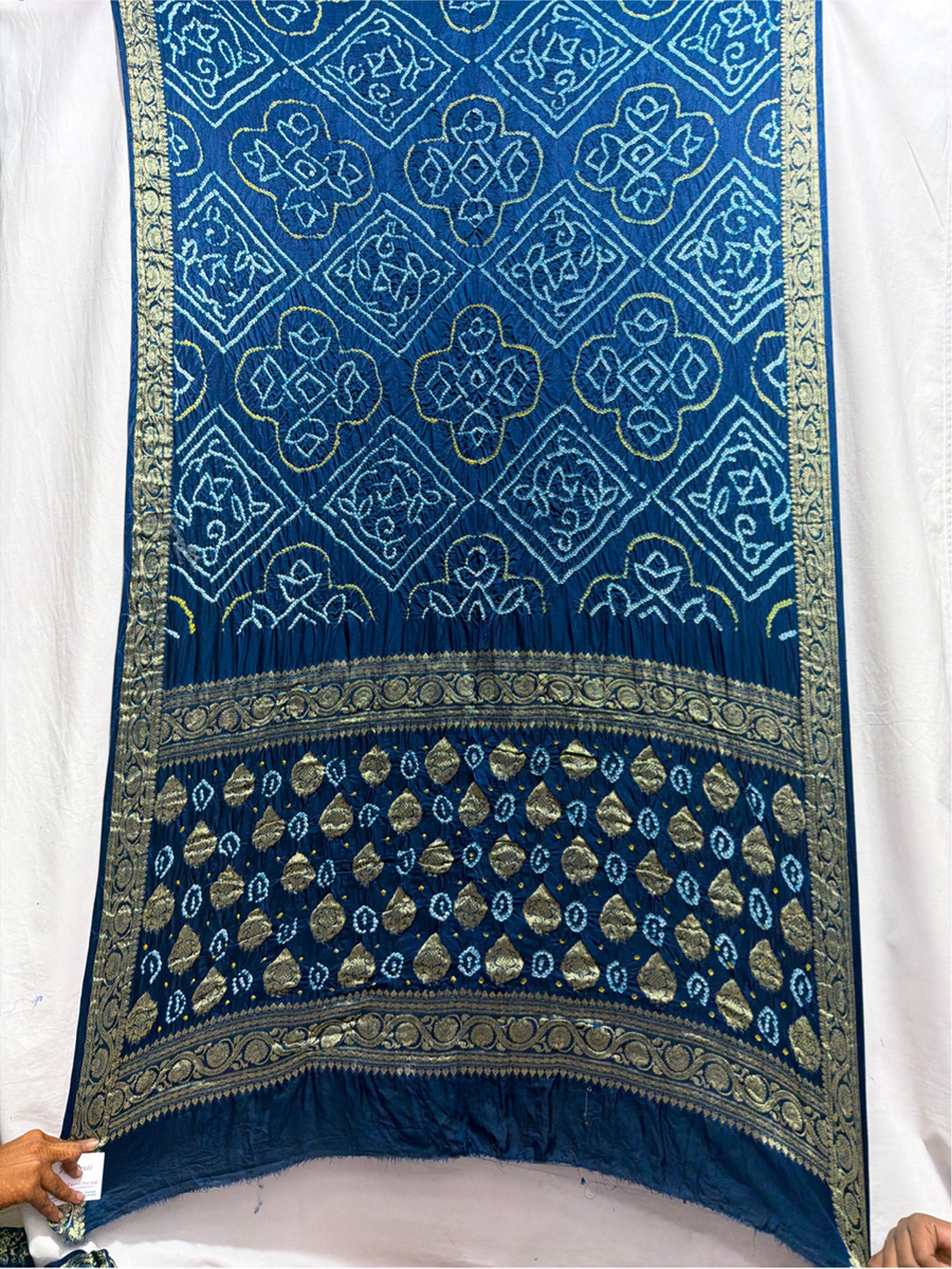Kala Sanskruti All Over Indigo Color Pure Gaji Silk Bandhani Saree 6.5M with Blouse Piece Elegant Traditional Wear Saree for Women