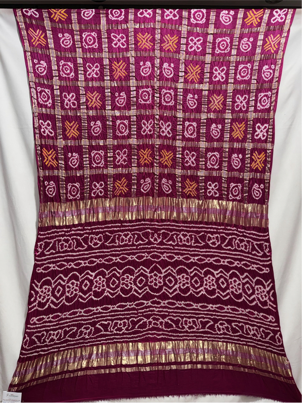 Kala Sanskruti All Over Magenta Color Pure Gaji Silk Heavy Gharchola Bandhani Saree 6.5M with Blouse Piece Elegant Traditional Wear Gharchola Saree for Women
