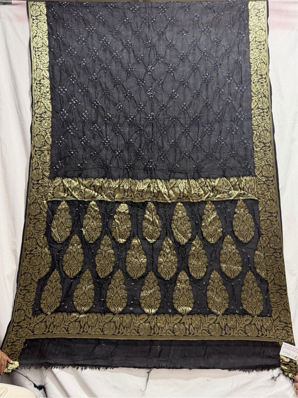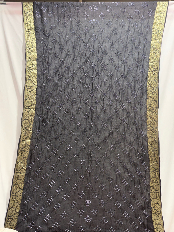 Adorned with a traditional Bandhani print over a rich black base, this saree blends classic artistry with versatile styling. Ideal for multipurpose occasions—from festive events to casual outings—it brings effortless charm and tradition to your ensemble.