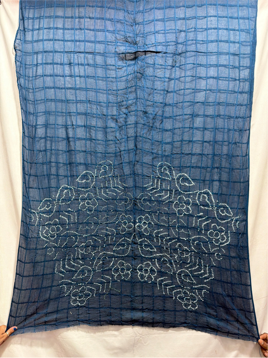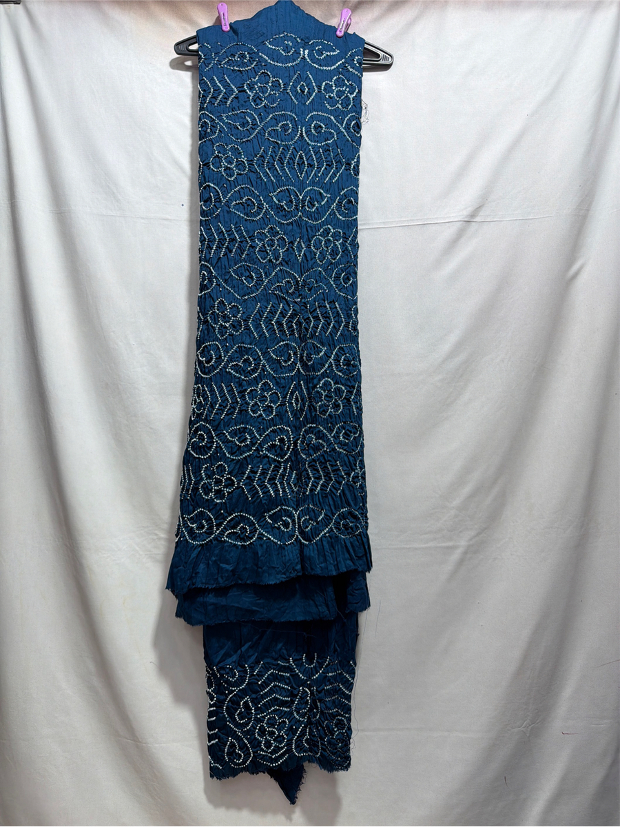 Kala Sanskruti All Over Indigo Blue Color Heavy Cotton Satin Bandhani Dress 2.5 M (Each Piece) Elegant Traditional Wear Dress Material for Women