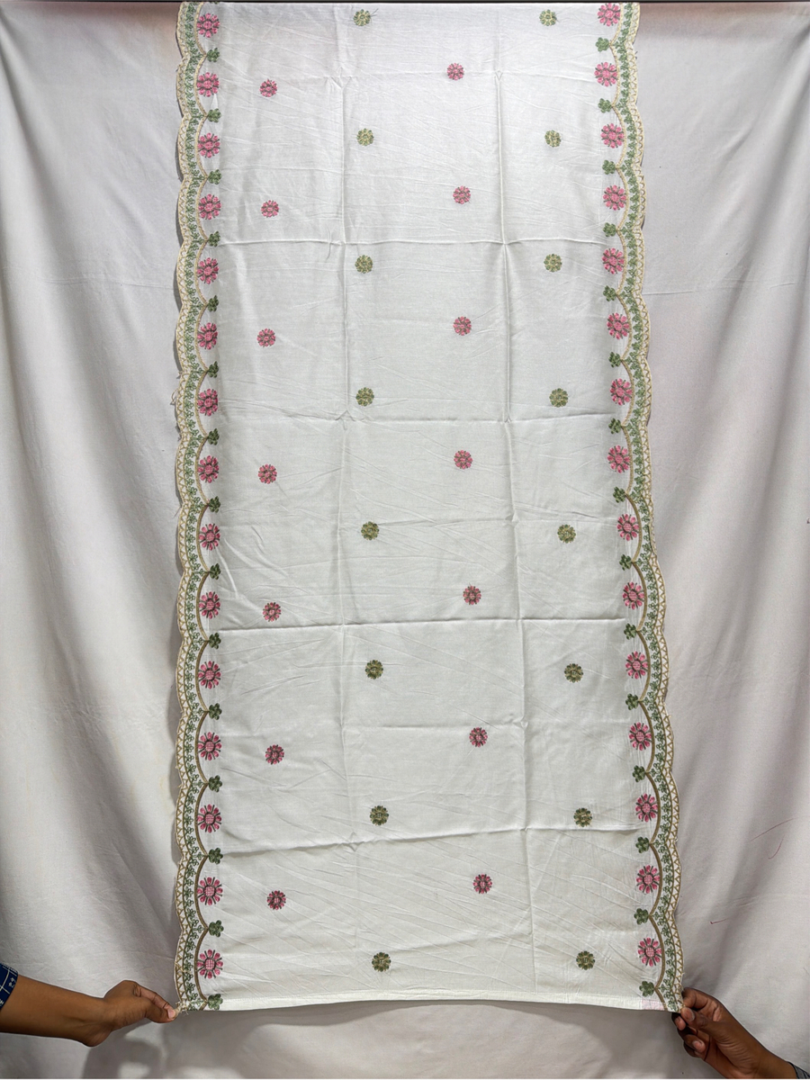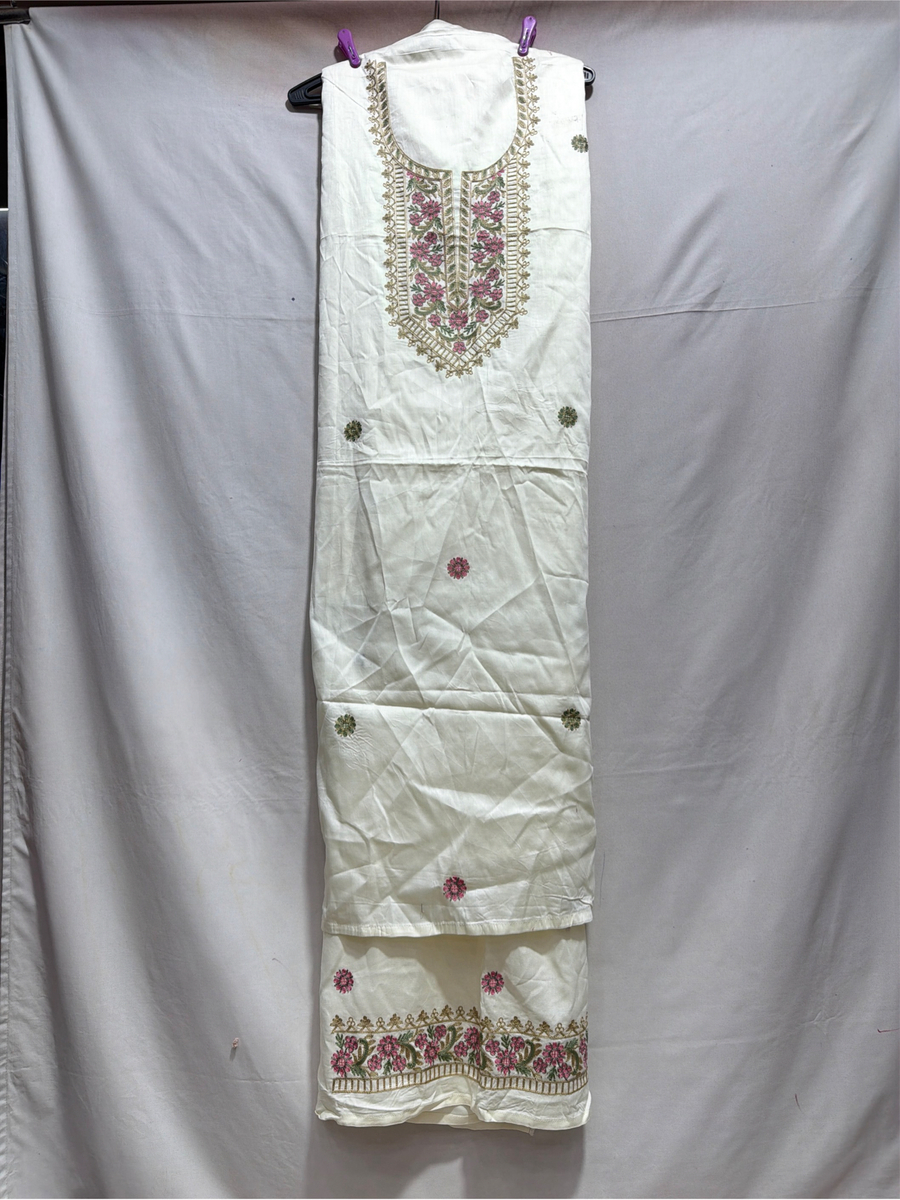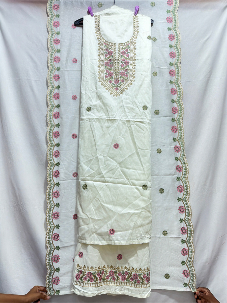 Kala Sanskruti All Over White Color Heavy Cotton Satin Printed Dress With Work 2.5 M (Each Piece) Elegant Traditional Wear Dress Material for Women