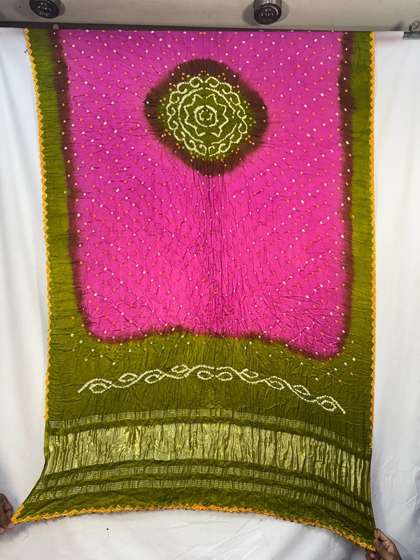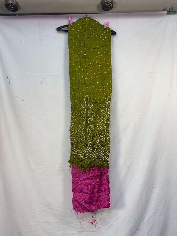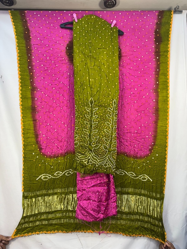 Kala Sanskruti Mahendi & Pink Color Art Silk Bandhani Dress – 2.5M (Each Piece)– Elegant Traditional Wear Bridal Dress for Women