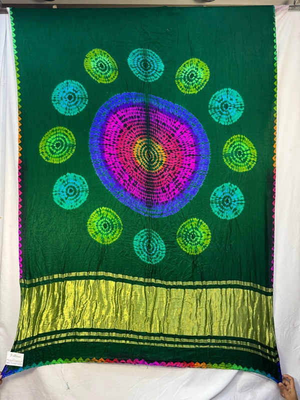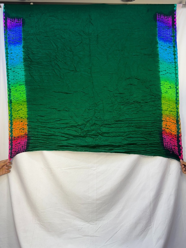 - Color & Work: A all over green saree adorned with intricate Hand Made Bandhani, designed to make it stand out on festive and wedding occasions.