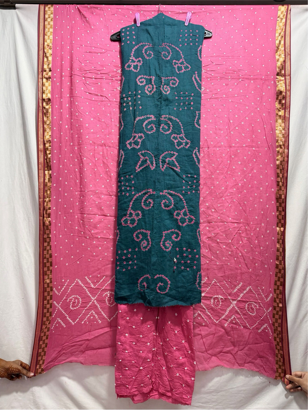 Kala Sanskruti All Over Indigo & Pink Color Heavy Cotton Satin Bandhani Dress 2.5 M (Each Piece) Elegant Traditional Wear Dress Material for Women