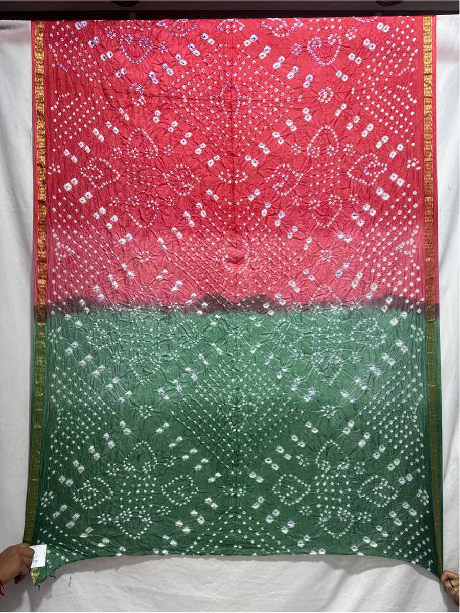 - Design: Red & Green Hand Made Bandhani motifs across the body.