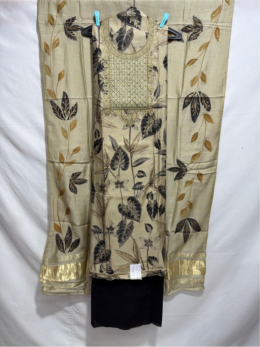 Kala Sanskruti Chikku & Black Color Heavy Cotton Printed Dress 2.5 M (Each Piece) Elegant Traditional Wear Dress Material for Women