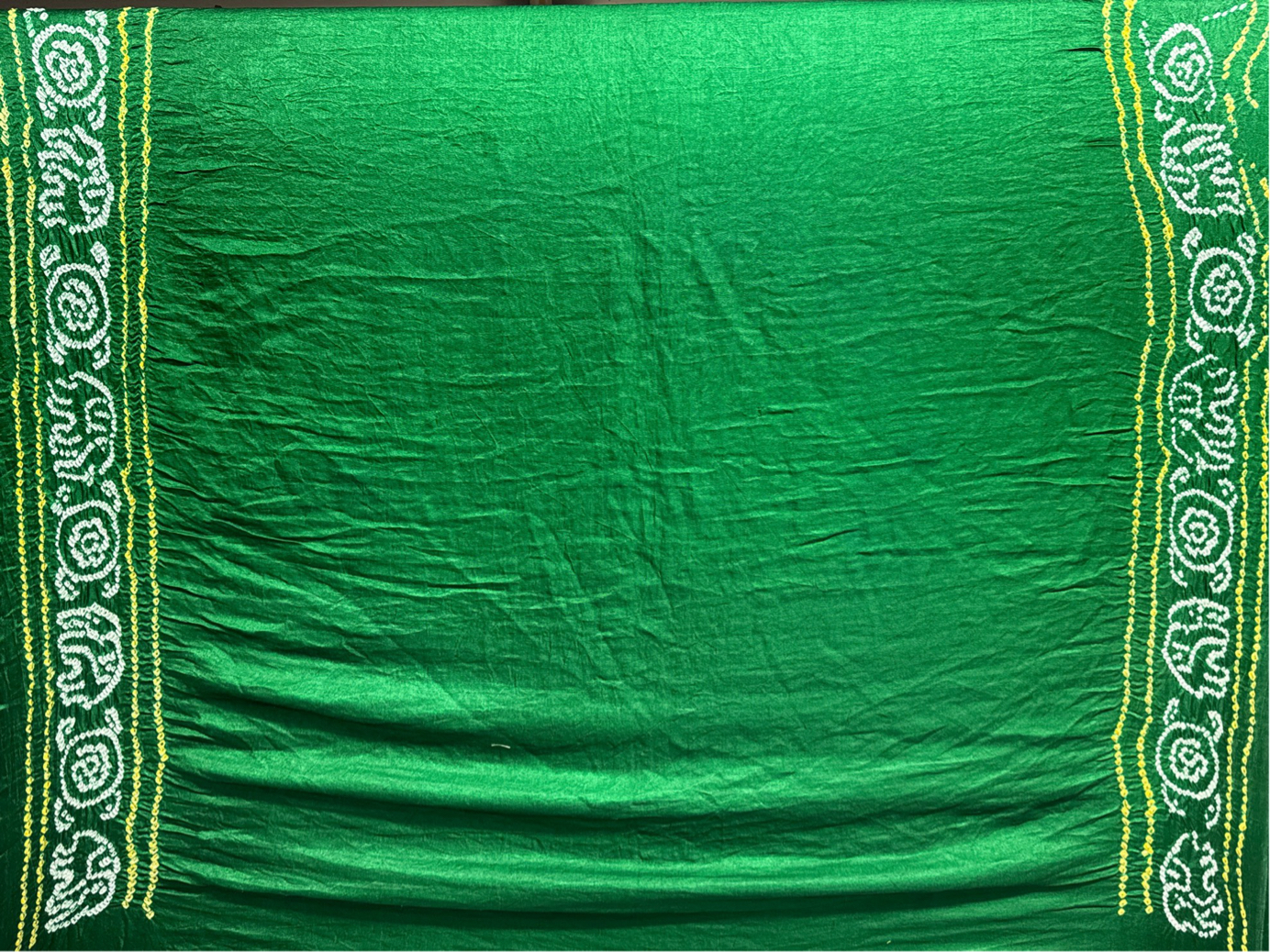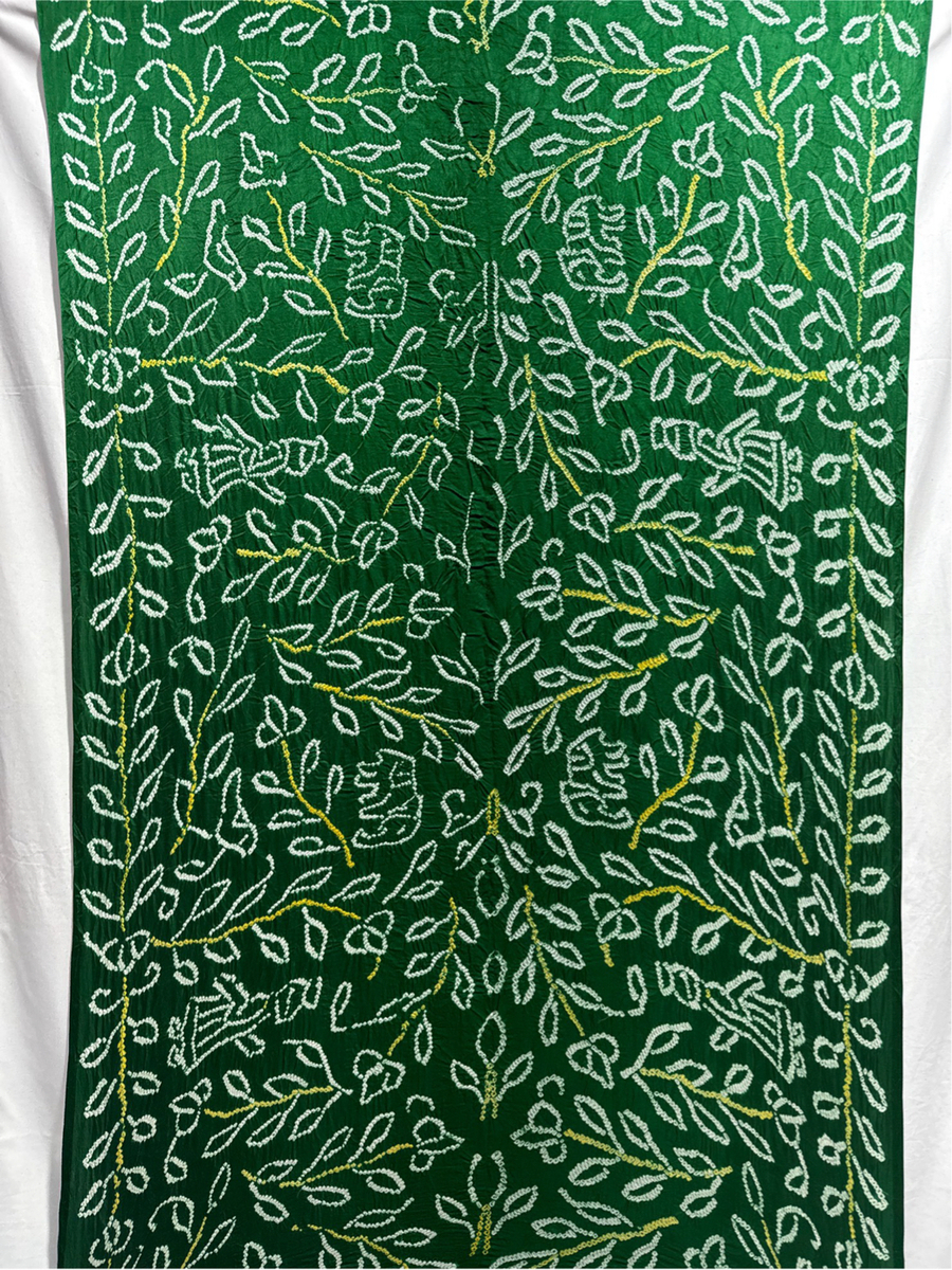 - Color & Work: A all over green saree adorned with intricate Hand Made Bandhani, designed to make it stand out on festive and wedding occasions.