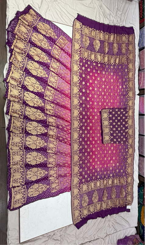 Kala Sanskruti Rani Pink & Purple Color Banarasi Georgette Bandhani Chaniyacholi 3.75M Elegant Traditional Pure Banarasi Chaniyacholi for Women
