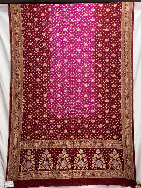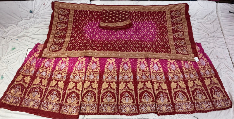 Kala Sanskruti Pink & Maroon Colour Dupion Silk Bandhani Chaniyacholi 3.75M - Elegant Traditional Wear Dupion Chaniyacholi's for Women