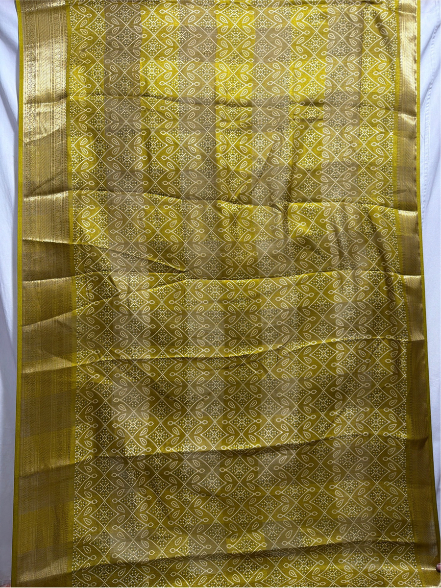 Kala Sanskruti All Over Mahendi Color Art Silk Printed Saree 6.5M with Blouse Piece Elegant Traditional Wear Bridal Unique Saree for Women
