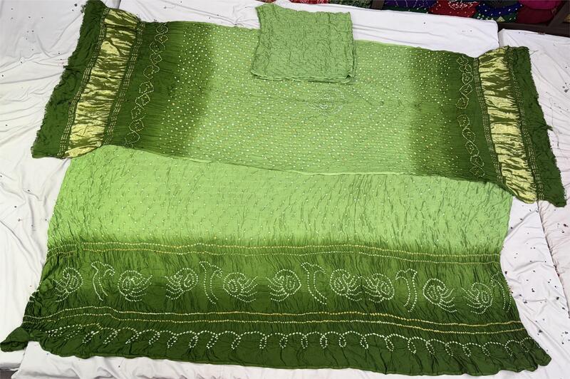 - Design: Light Dark Pista — Hand Made Bandhani motifs across the body.
